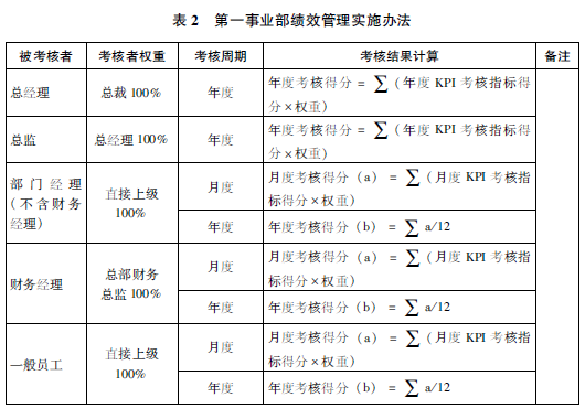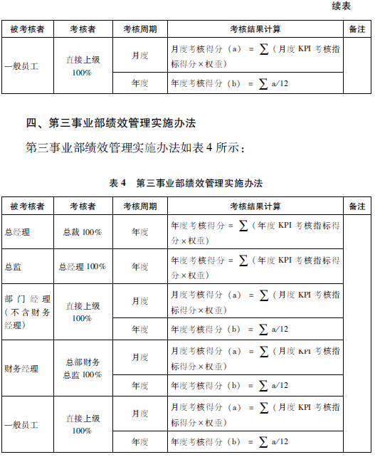 (3)绩效考核得分计算。当期绩效考核得分由各项KPI分值加权得出(有“否决性”指标的,必须符合要求),计算公式为: