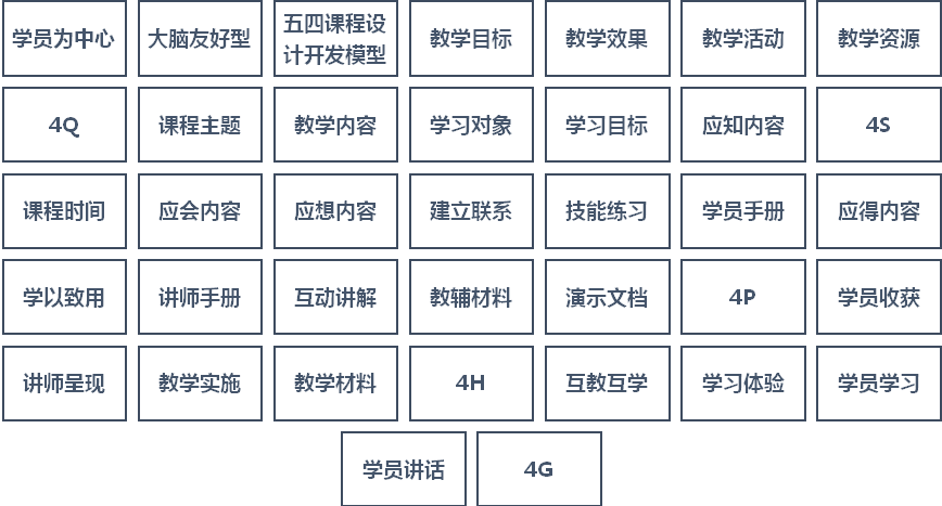 第一步,培训师需要将课程的核心内容以关键词的方式梳理出来;结合五四课程设计开发模型,梳理出37个关键词,这些关键词在是课程的核心内容,期待所有学员都能够记住、会用、用好。如图3-5所示。