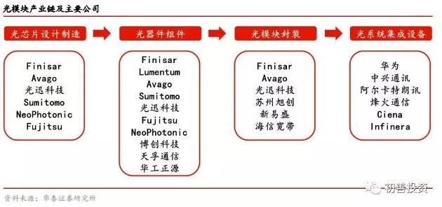 在国际市场上,光模块产业链上游竞争力不足,光通信器件/模块厂商占比较低,特别是光芯片,高端产品被美国和日本厂商垄断。如图6-28所示。