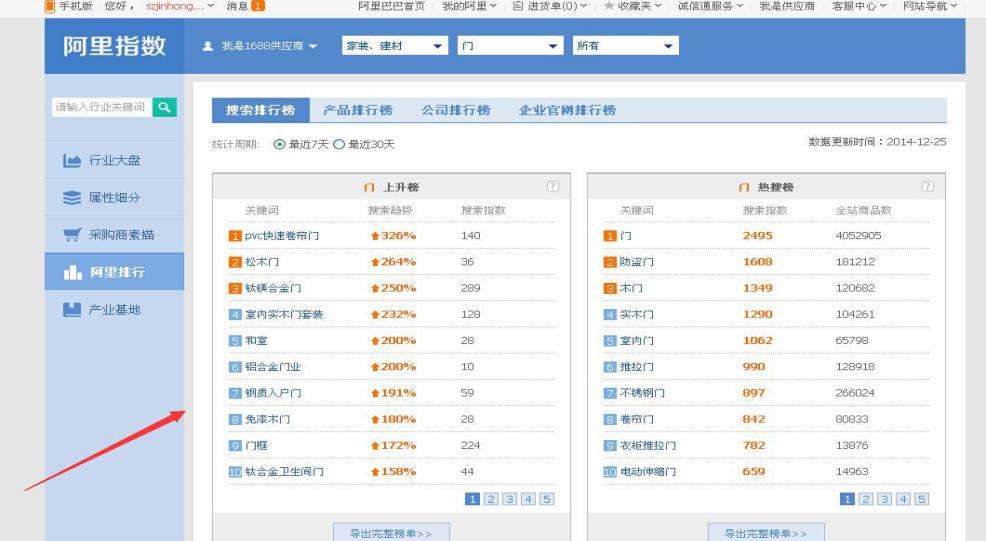 阿里指数中有个细节要注意,那就是选择关键词时,要有技巧的去选,不是乱选。在上升榜里,我们要选搜索趋势高、搜索指数高的词!在热搜榜里要选搜索指数高、全站商品数少的词(但不要选少得可怜的)。