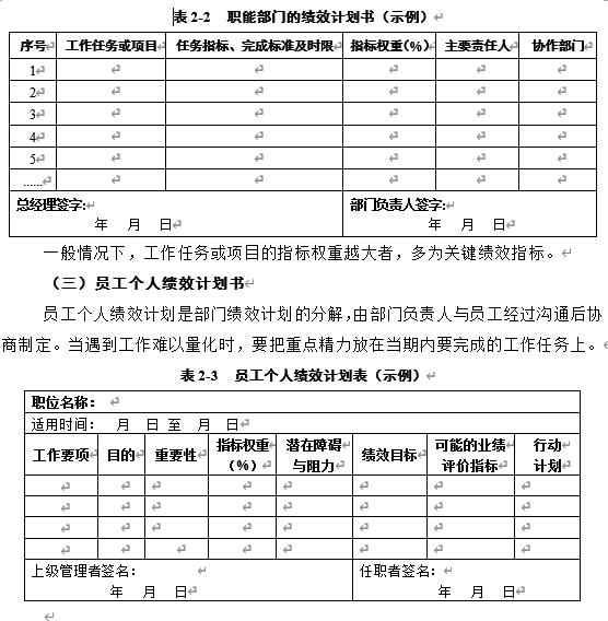 (二)部门绩效计划书