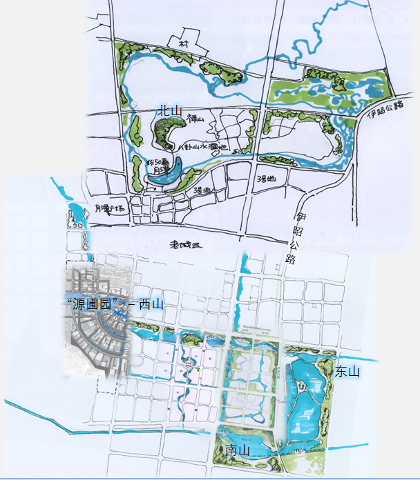 未来:新区、湖泊、源圃园等,全部内容形成西域水庄。