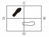 3.上半身保持不变,左脚向正北直线荡出一步,左脚跟点地,重心仍然在右脚,左脚成虚脚。