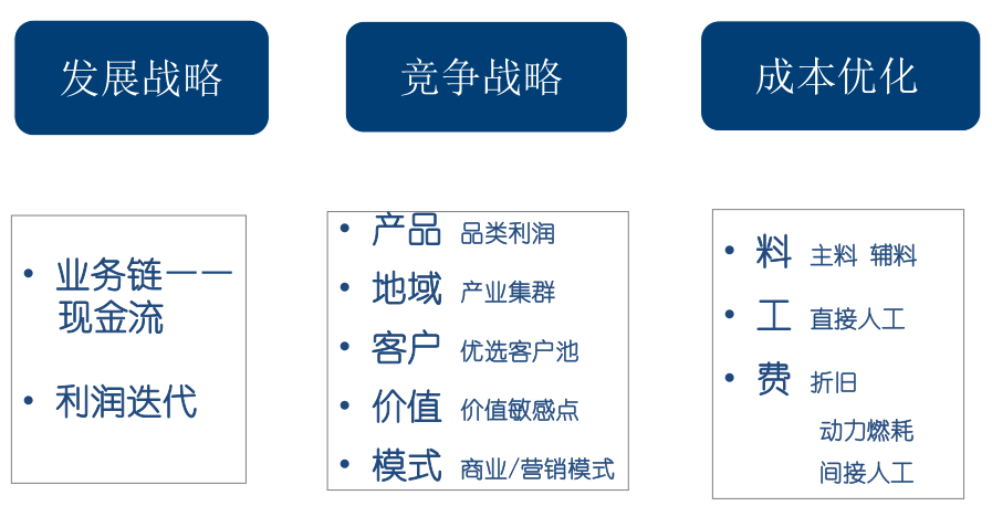 满足战略需求是阿米巴经营模式的一大重要任务,包含了组织形态、资源配置、资金保障、人才保障等。有什么样的战略,就有着什么样的需求,战略不同,需求截然不同。