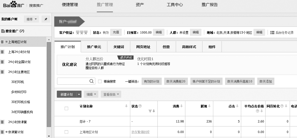 初次接触百度推广账户的人都会觉得有点头晕,打开一个窗口就是一堆图表,再打开一个窗口还是一堆图表。别说你了,百度客服也不是所有图表都能看懂,都能使用。我虽然长年研究百度,但只要隔一段时间不看后台,就会发现常用的工具不在原来的位置了,这是因为百度又增加新功能了,老的工具被移动了位置。以至于有时我备好了课,过了一周给企业做网络营销内训时,找不到要讲的工具放在哪了(注:网络营销课程有个特点,一般不会用准备好的PPT讲,都是即兴在网上边搜索边讲,更具有真实性)。