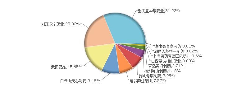 (2)该产品剂型齐全,其中颗粒剂为主要剂型之一,市场中常见企业有七家,两家以临床为主,五家以流通和零售为主,价格逐步趋向透明。其余剂型为干混悬、咀嚼片、胶囊、片、分散片。
