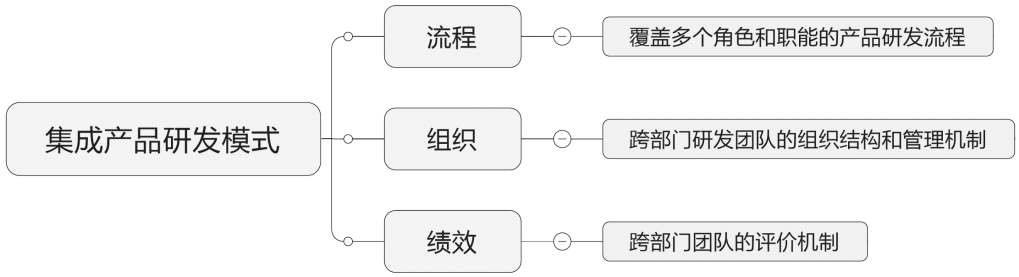 在进行研发组织调整,必须考虑到组织结构及其职责划分、相关流程制度、绩效评价机制等要素的匹配。以集成产品开发模式为例,其有效运作需要跨部门研发团队、结构化研发流程和跨部门绩效管理机制三个要素的共同支撑。如图3-45所示。三者的不一致将削弱实施效果:仅有流程,项目经理还是在唱独角戏;仅有组织,团队将不知道如何工作而原地踏步;仅有绩效管理,当事人将揽功推过、把工作当成政治游戏。