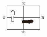 3.上半身保持不变,左脚向正北直线“荡”出一步,左脚跟点地,重心仍然在右脚,左脚成虚脚。