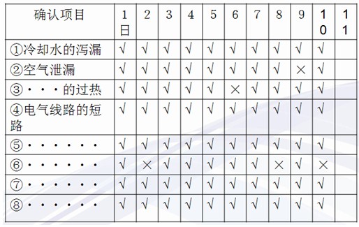 (2)这种点检表可以防止遗落(防止不小心的失误)、检查作业基准、机械操作、机械的部位……把非做不可、非检查不可的工作或项目按点检顺序列出,逐一点检并记录之(只能做到是否确实实施的效果)。
