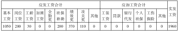 7.10如:XX出勤为31天的工资计算方式如表2-10所示: