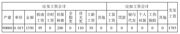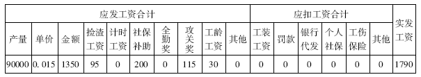 7.7如:计件员工XX出勤为21天的工资计算方式如表2-9所示: