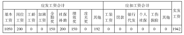 7.11如:XX出勤为28天的工资计算方式如表3-11所示: