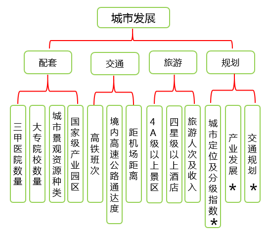 城市发展指标我们从配套资源、交通、旅游、规划引领四个方面进行综合评价。