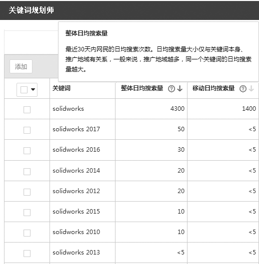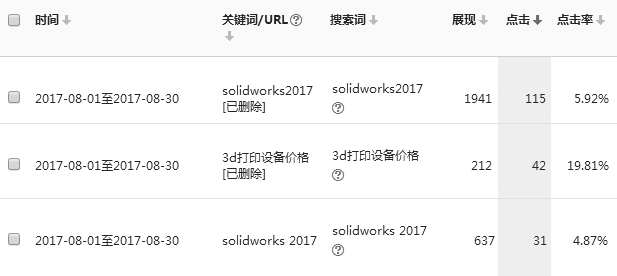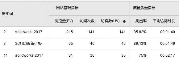 如图7-18所示,这是一家卖solidworks软件和3D打印设备代理商的30天数据截图,这里只列出了三个比较典型的搜索词。