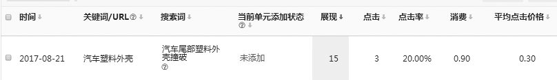 在【搜索词报告】中的“3d打印设备价格”,有着极高的点击率19.81%。一般情况下,高的点击率也意味着高的关键词质量度,也就意味着你能以较低的价格排较高的名次。但十几年的经验告诉我,点击量比较多的词通常点击率不太高,平均值通常都在2%以内,而这个词高出了10倍。我们检查了其他近期点击量高而又没有咨询的搜索词,发现点击率也都很高,而且都不超过20%。为什么20%是天花板呢?