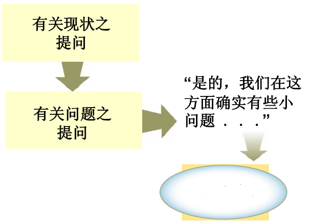 问题型提问实际上是提醒客户有问题存在,提问的出发点不是客户需要什么产品,而是客户目前存在什么样的困难和问题。前者是以我为中心的,而后者是以客户为中心的,当你真正关注客户的问题,并且让客户感觉你是在帮他的时候,你会发现,销售变成一件顺理成章的事情,所以问题型提问在成功的销售访谈中用得最多。