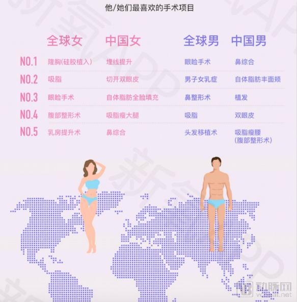从增长最快的医美项目看,中国和全球数据亦有不同的取向。我国私密整形增速第一,皮肤类改善需求是全球增速的2倍。医美本身就是一种消费升级,而私密整形是消费升级中的升级。