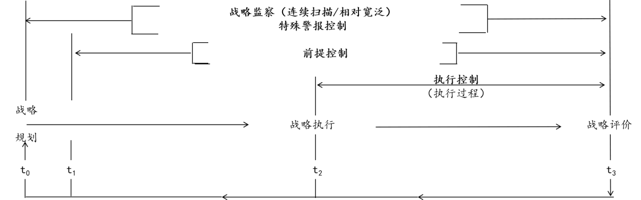 1992年学者普雷布尔提出了战略控制的三阶段模型,包括前提控制、执行控制、战略监察,揭示了与战略规划、战略执行和战略评价的关系,如图3-51所示: