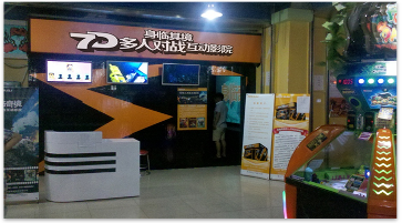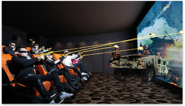 身临其境7D多人对战互动影院(如图2-12所示),是中国第一家将游戏娱乐、3D立体视频技术与动感影院技术巧妙结合的创新型项目。观影者能够成为电影中的角色并身临其境般感受到自己就是电影里的一分子,并持续与影片内容产生交互作用。