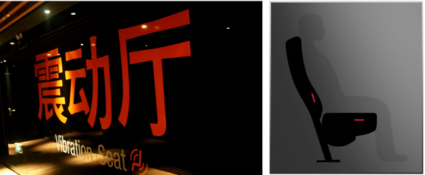 4D厅与以往坐落于各类游乐场、科技馆的体验型4D影院不同。4D厅摈弃了传统的教育、科技体验的短片。观影过程中,观众可以同步体验根据片中剧情设置的座椅转动、吹风、喷香味、喷水、闪电等颇具实感性的特殊效果,从视觉、听觉、触觉、嗅觉四个维度全方位进行观影体验,具体如图2-5、图2-6所示。