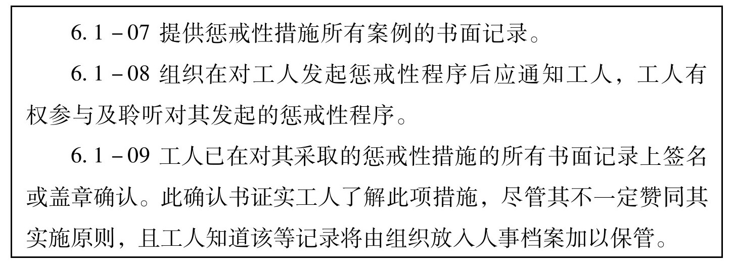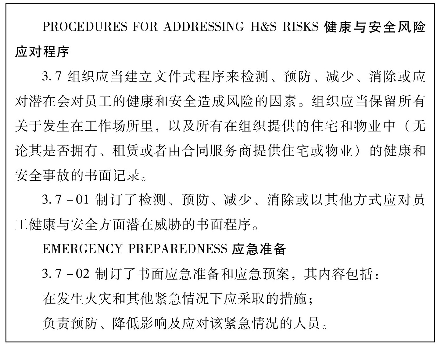 4.本标准目的在于提供一个基于联合国人权宣言,国际劳工组织(ILO)和其他国际人权惯例,劳动定额标准以及国家法律的标准,授权并保护所有在公司控制和影响范围内的生产或服务人员,包括公司自己及其供应商、分包商、分包方雇用的员工和家庭工人。