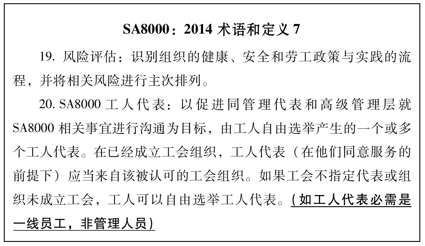 3.自2016年1月1日起,唯一可接纳的社会责任认证标准将统一为SA8000:2014版。