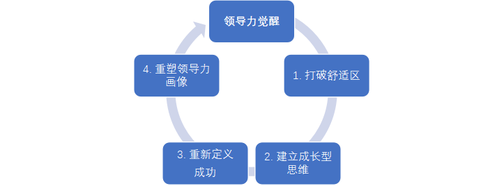 领导力觉醒参考路径:通过不断打破舒适区的过程中获得成长,在成长中获得快乐,在突破—成长—快乐这个模式中不断重复,从而突破保守思想和宿命论。在不断打破舒适区的过程中,逐渐培养和建立成长性思维。