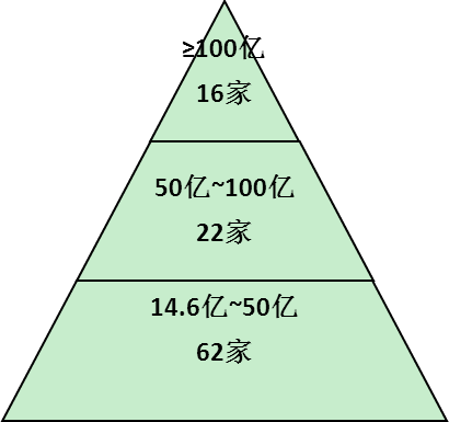 南方所的中国制药工业百强评选的统计指标口径是企业年度制药工业的销售收入金额,参评企业是以医药制造业为主营业务的医药工业企业。2016年中国制药工业百强的总规模达到11600亿元,制药工业百强集中度为47.2%。超过百亿销售规模的企业有16家,50~100亿元的有22家,20~50亿元的有45家,10~20亿元的有17家。如表8-1所示。