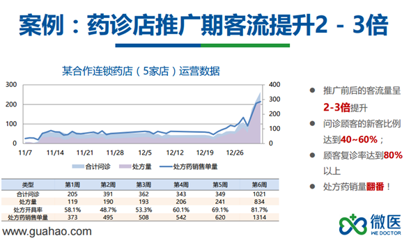 药店选择接入微医药诊店,除了服务能力的提升之外,微医药诊店为其带来的客流、销量上的提升也是重要因素。