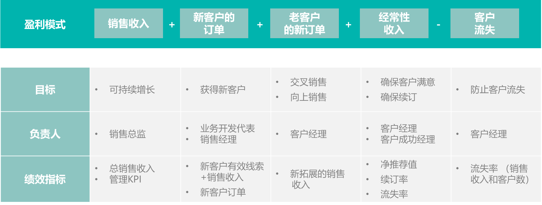 团队指标 | • 促进基于团队合作的销售文化 • 促进关注客户需求,而不仅是个人收入 • 减少销售人员之间的矛盾和不良竞争 | • 可能造成“大锅饭”文化 • 可能导致优秀销售人员流失 • 无法快速诊断哪些因素对绩效的影响最大 |