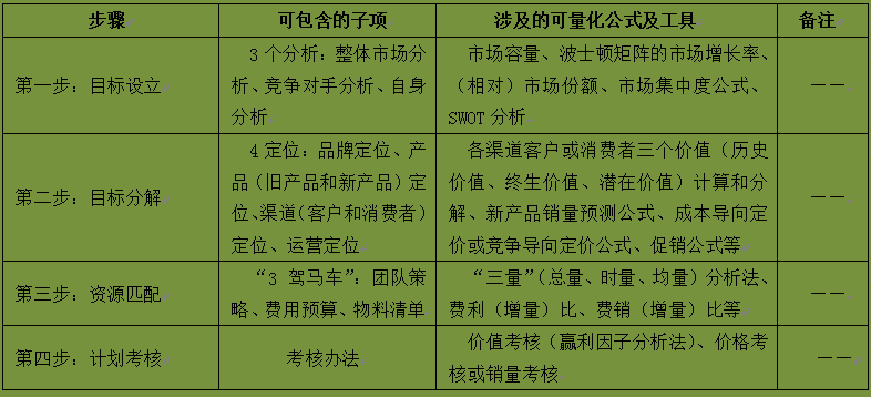根据提炼出的规划基本逻辑,再用数字营销的方式将每个步骤尽可能地量化,成为可控计划,是量化式计划管理的基本思想。