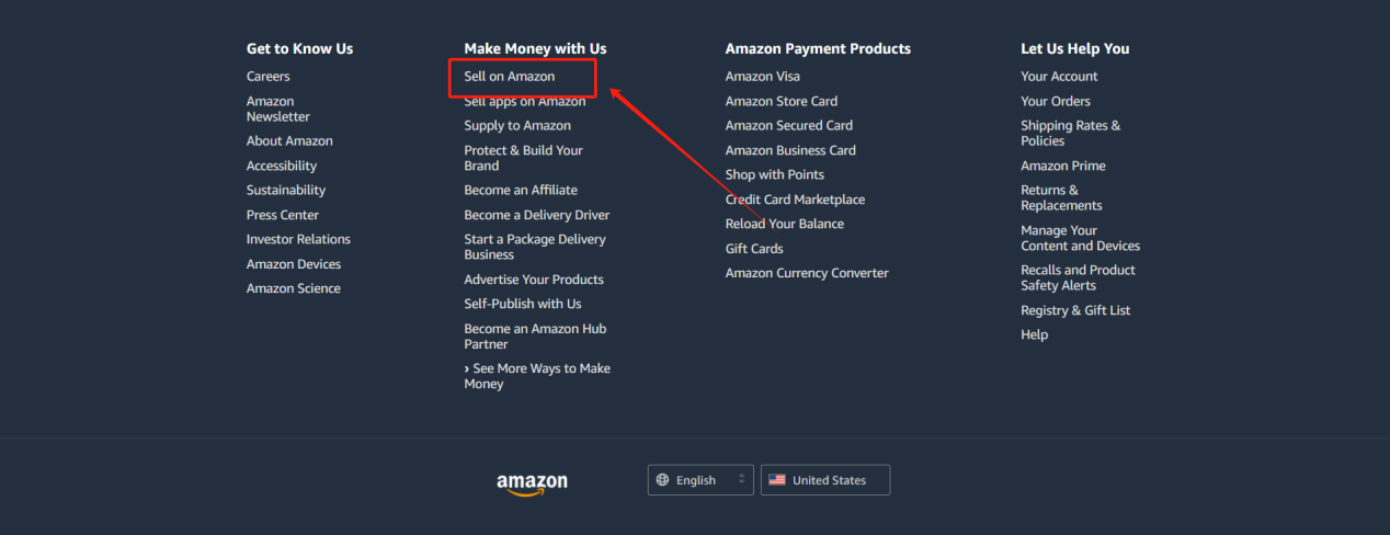 注册店铺的具体操作如上图所示,点击亚马逊网站(https://www.amazon.com/)的Sell on Amazon(在亚马逊上销售),按照要求填写好所需要的资料即可。要认真填写各项信息,包括公司名称、联系方式、银行账户等。同时,准备好相关证件,如营业执照、法人身份证等。注册过程可能会遇到一些问题,如信息填写不完整、证件不符合要求等。此时,企业可以通过亚马逊的卖家支持渠道寻求帮助,及时解决问题,确保注册过程顺利进行。