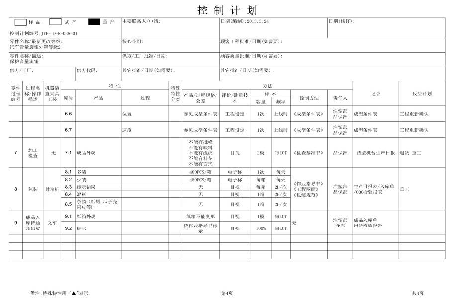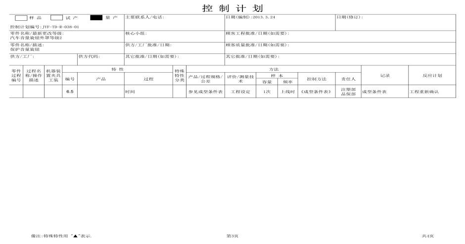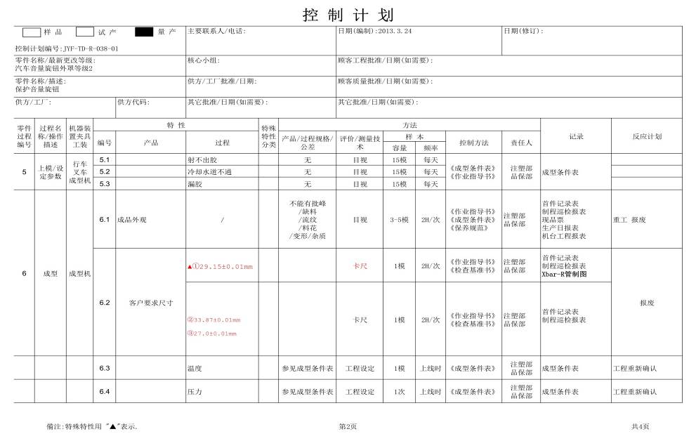 生产-对产品/过程控制特性、影响特殊特性的过程控制、相关的试验以及在产品形成规模和正常生产过程中使用的测量系统等形成文件。根据组织的判定,还可以包括其他内容。