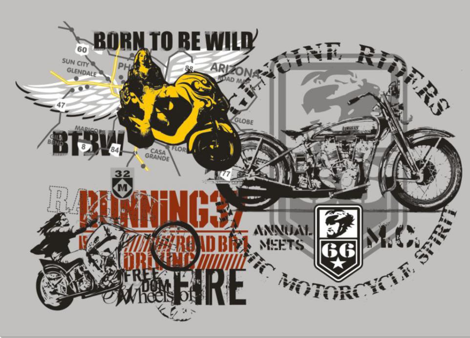 马龙·白兰度的《飞车党》中驾驶机车的浪子造型,成为叛逆的标记。皮夹克、紧身牛仔裤、白色 T恤、黑色手套和皮靴,至今都是哈雷行头的主要风格