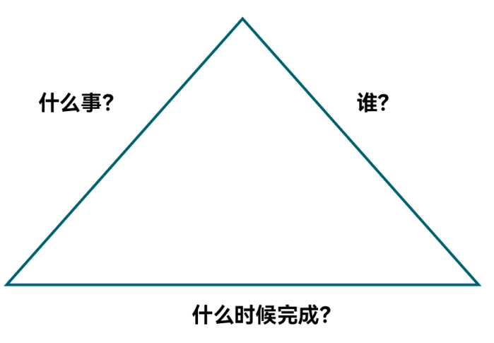 在会议中,当我们的决策没有相关的行动部署安排,被一些话语草草结束时,我们其余参会者或者主持人一定要及时站出来,通过提问确认这些行动的重要因素。以此确保我们的“行动三角”是完整的,相关重要行动节点在会议现场得到相关人员承诺并会坚决执行的。