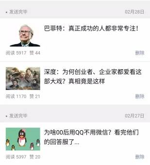 再看巴菲特的案例,标题叫《巴菲特:真正成功的人都非常专注!》,如果将这个标题改为《真正成功的人都非常专注》,那么将这篇文章转到朋友圈,或者发到公众号,还有人关注吗?没有人关注,没有人打开。如果在这个标题前面,加一个巴菲特冒号,因为巴菲特是名人,是个IP,有流量,在全球知名度高,那么一下子就会引起众人的关注。名人放个屁,大家都想围观,这就是品牌和IP的力量。