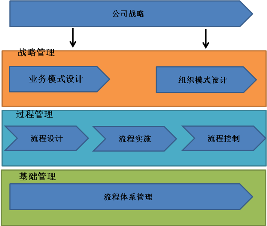 通过流程的组件化、菜单式管理,快速进行业务组合和调整,降低公司变革风险。打破职能界限,加强工作一体化设计图形化表达,清晰、简洁、无二义性成为各部门的共同语言,可以快速、准确、全面了解公司业务是成果固化的载体,提高成果固化效率,加速最佳实践的共享和移植,是业务外包和业务拓展的基础,是改善的对象和依据,提高改善效率。