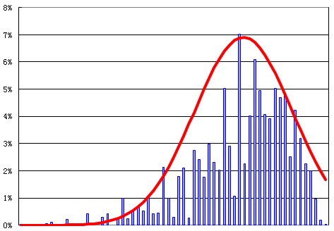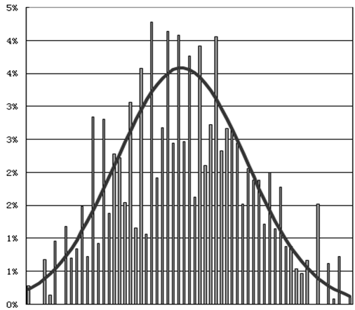 峰度大于0表示分布比正态分布更集中,呈尖峰状,如图7-4所示。