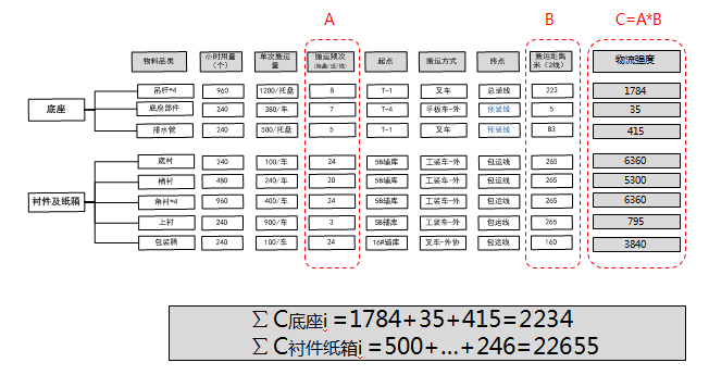 第一步:统计零件的物流强度,按托计算。