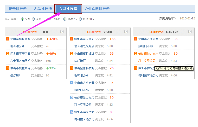 如果产品销量不高,可能就找不到自家的产品,销量高的或许能找到自己的产品。这里需要说明的是:产品排行榜分交易、流量及7天、30天。我们常看到很多人会看交易且是7天的。