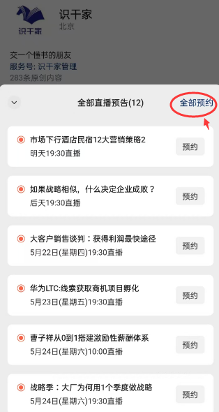 一键预约全部直播