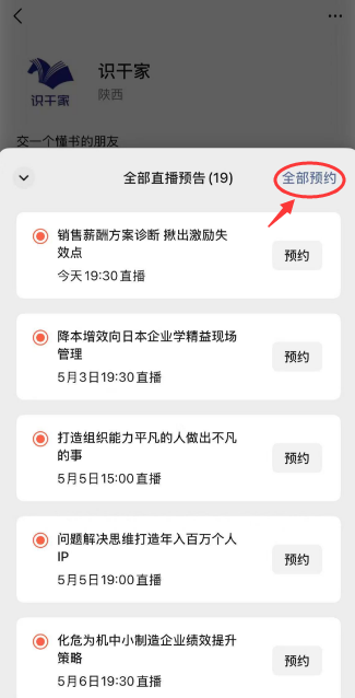 一键预约全部直播