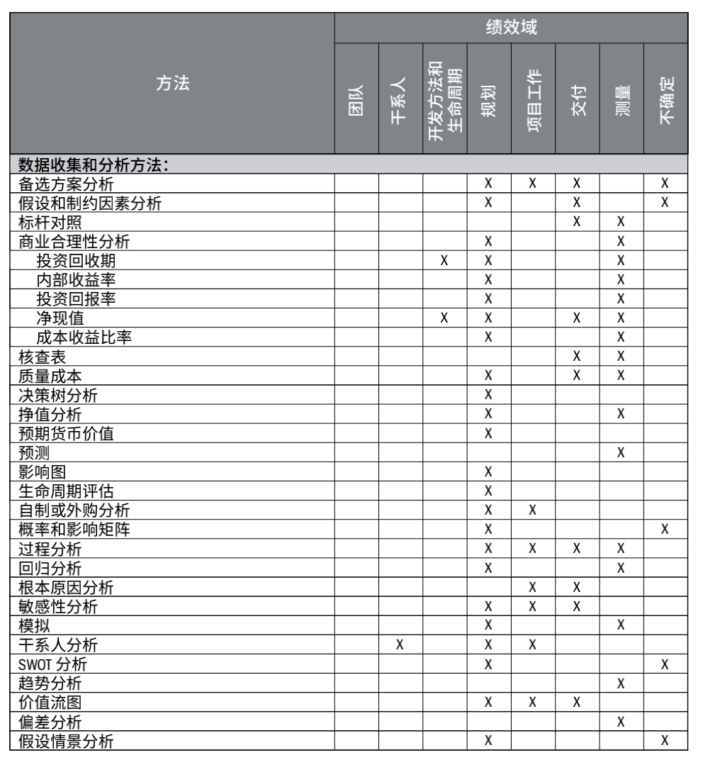 在每个绩效域中,不同的方法可能更有用。虽然交付方法、产品和组织环境的需求将决定哪些方法最适合特定项目,但某些绩效域更有可能使用特定方法。表7-4列出了每种方法最有可能使用的绩效域,但项目经理和/或项目团队负有为其项目选择合适方法的最终责任。表7-4 每种方法最有可能使用的绩效域(图表来自PMBOK第七版)