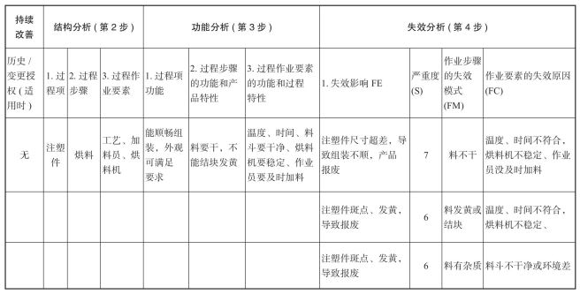 如果严重度不一样,就要分开填写,比如过程项功能有组装、外观要求,组装要求的严重度高于外观要求,S的分不一样,在填写失效影响就要分开填写。失效模式与失效影响一一对应后,根据失效模式找到失效原因,失效原因在预防控制措施下O发生度不一样,也要分开填写。