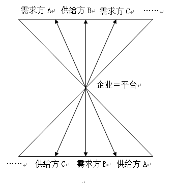 现在,和连锁卖场所实现的“有隔离的平台”不同,今天,最有成长性的“平台”已经成为下图(图3-6)这样的“沙漏节点”。
