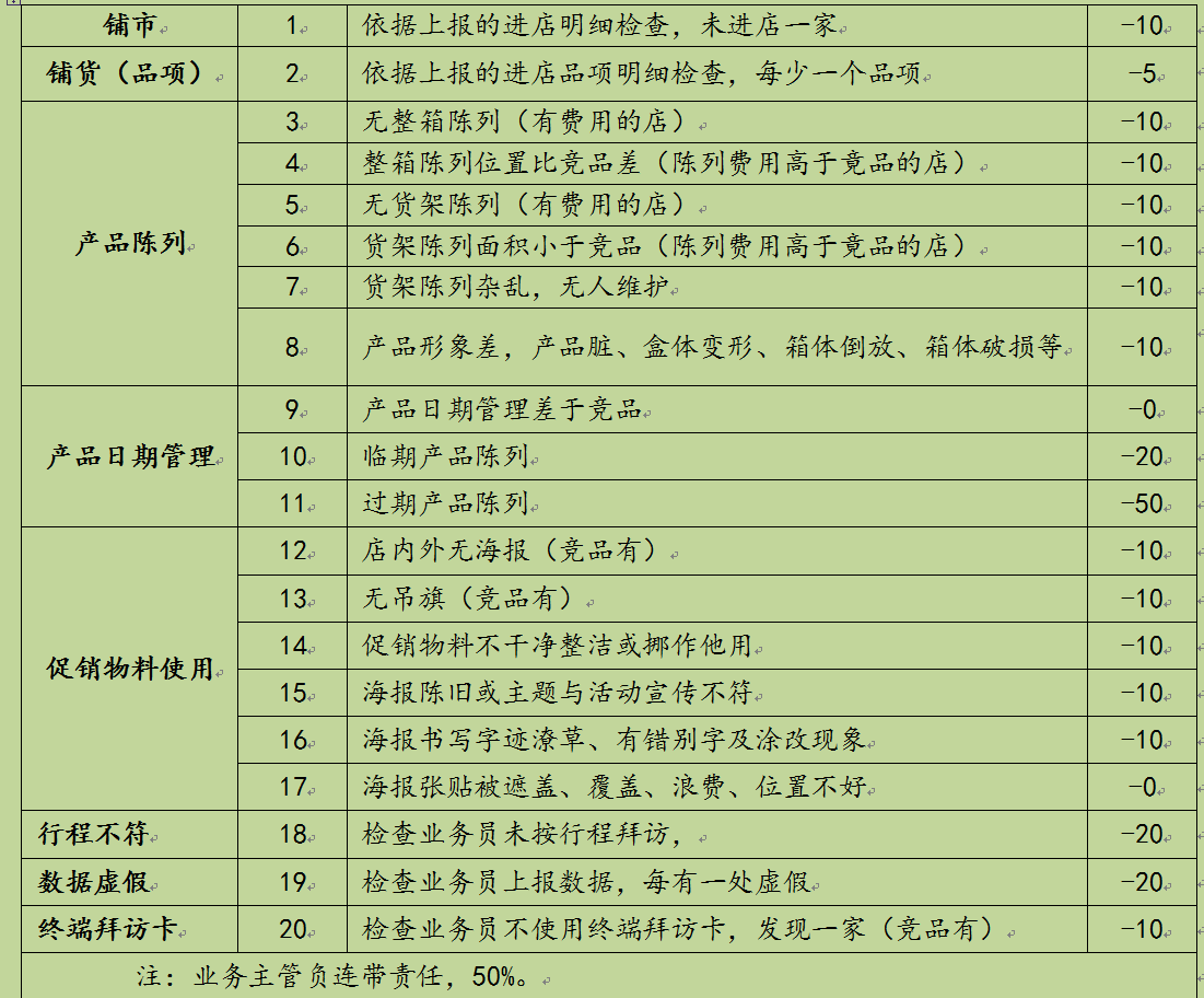 表4-3业务员终端考核表