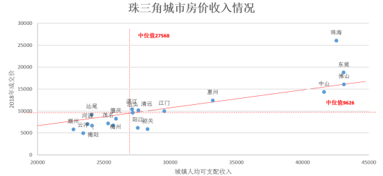 房价收入情况,在均值线下,居民收入较大且距离轴线向下偏离越大代表房价上涨潜力越强。重点关注城市有阳江、韶关、江门;一般关注城市潮州、云浮、河源、揭阳、梅州、茂名、肇庆。