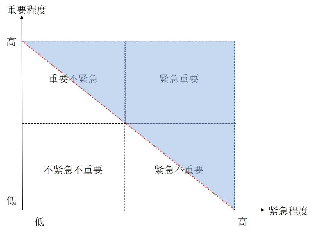 每当提到工作的优先级排序,大家都习惯性提到从重要、紧急程度两个维度着手,这就是传说中的万金油模式,好像都对,好像又总是缺点什么。如下图所示:
