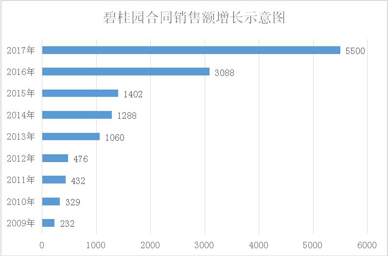 在以追求规模为王的生产型社会,做大规模严控成本产品倾销是房企制胜的法宝,于是以碧桂园为代表的高周转房企在这一轮脱颖而出,碧桂园近些年飞速发展,合同销售额从2009年的232亿元,到2013年跻身千亿房企,2016年位列中国房企前三强,2017年以5500亿元销售额登上宇宙第一房企的宝座。