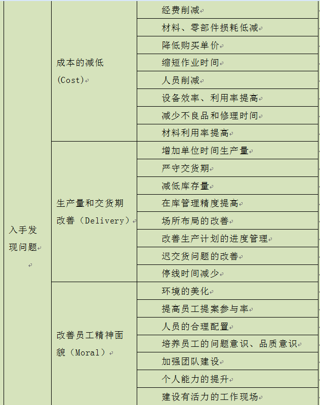 寻找和定义课题的方法有很多,我们不仅可以从管理及目标体系中找出改善课题,还可以从日常管理的问题中找出课题。在我们的身边,课题是大量存在的,但是也不要因为有众多的课题而束手无策,要根据经营和管理的需要,及对现场、现物进行的实际分析,确定改善的重点,找准改善的对象,展开有效的改善活动。